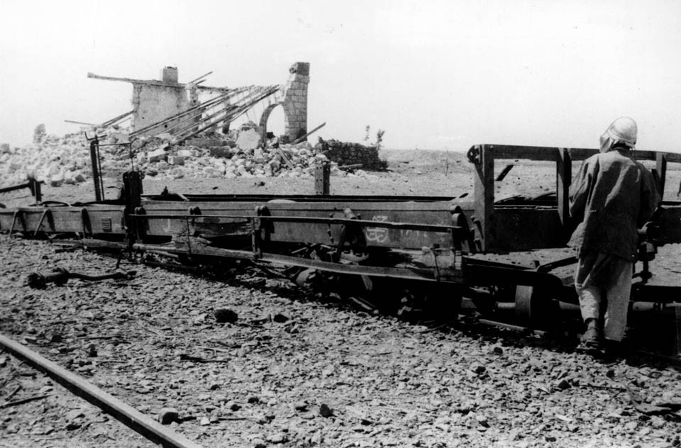 1918年,劳伦斯在德拉一带领导、发动了对汉志铁路最凶猛的袭击。图为劳伦斯查看被摧毁的火车(视觉中国/图)