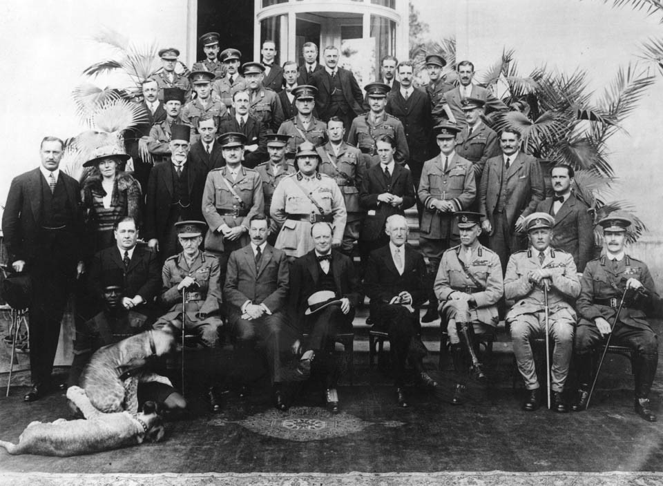 1921年,丘吉尔(前排中)和劳伦斯(第二排右四)在开罗会议期间 (视觉中国/图)