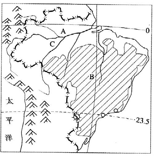2、巴西的世界之最:最大的平原—A—亚马孙平原;最大的高原—B—巴西高原;流量最大、流域面积最广的河流—C—亚马孙河。是世界热带面积最大的国家,拥有世界面积最大的热带雨林,其中60%在巴西境内(记住P90图9.18:亚马孙平原、巴西高原、亚马孙河、大西洋、巴拉那河、圣保罗、巴西利亚、里约热内卢)。以热带雨林气候和热带草原气候为主。