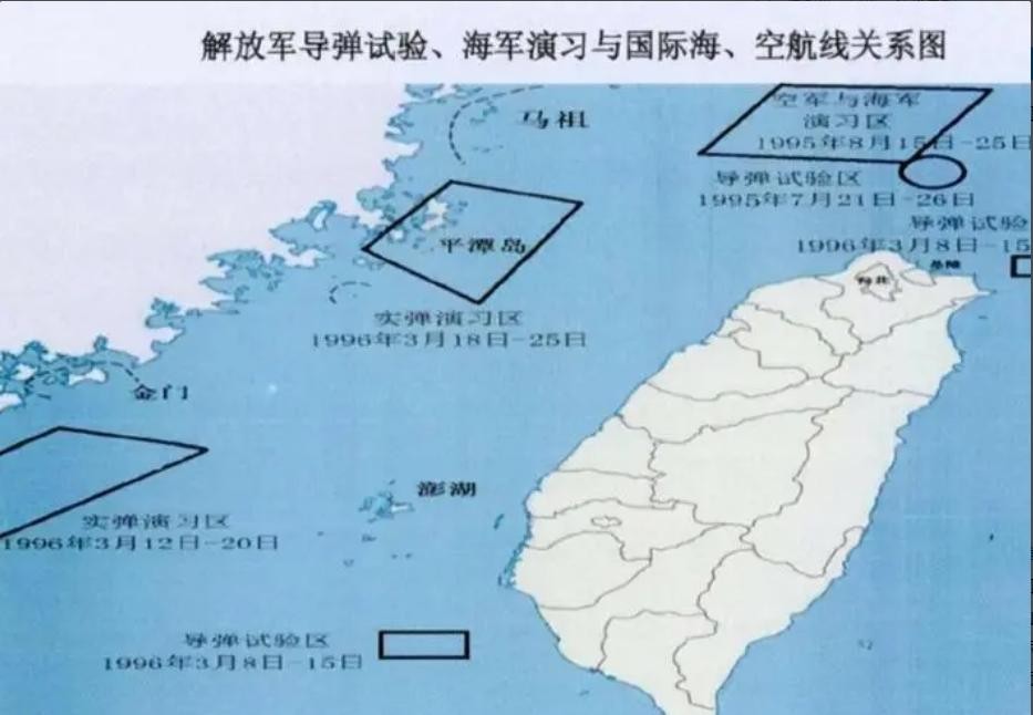 1995年7月18日,二炮部队向距离台湾极近的彭佳屿发射导弹,中央军委领导亲临现场作观摩监督,同一时间,美国方面命令尼米兹号航母穿越台湾海峡,中美两国自此进入了绝对紧张状态,第三次台海危机正式拉开帷幕。