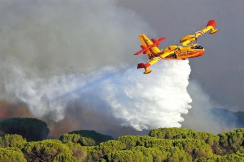 2021年8月,欧洲多个地区发生山火。17日,一架消防飞机在法国勒卡内德莫尔进行灭火作业。新华社/欧新