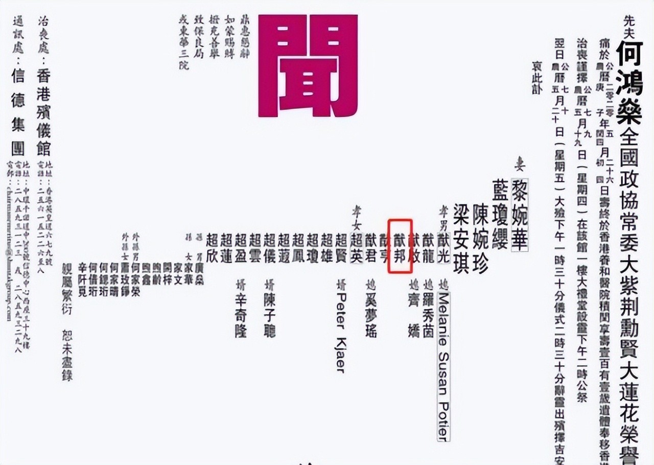 可是呢,何鸿燊去世后的讣告里,突然冒出来一个叫“何猷邦”的名字。