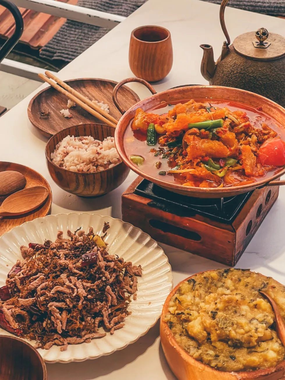 「春常在云南菜」这家云南餐厅挨着上文提到的「春风在书店」,它可以说是“宋庄自己的云南驻京办”。店是小门脸,一不小心就错过,但里面别有洞天,空间不小,还设有包间,装潢也与云南当地的馆子十分相似,老板还会及时更新从云南空运而来的时令菜。