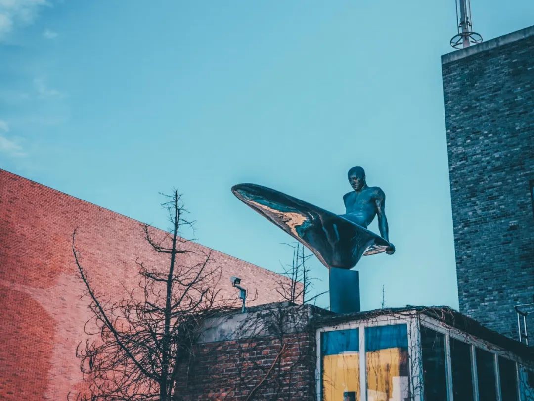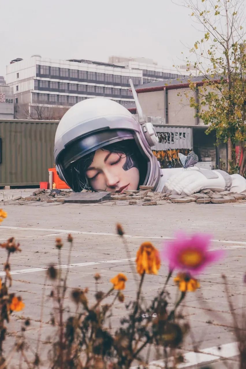 来到宋庄的第一件事,许多人会选择打卡小堡广场的「宇航员雕塑」。巨型雕塑以“天外来物”的姿态,极具存在感地坠落在大地上。