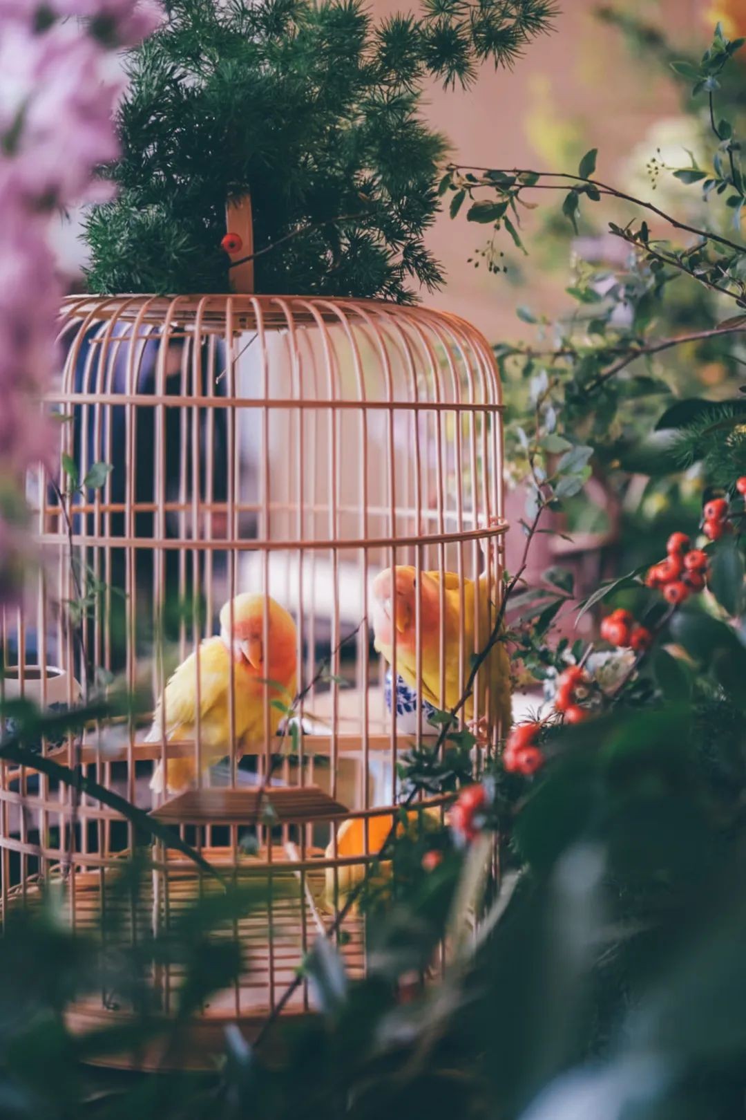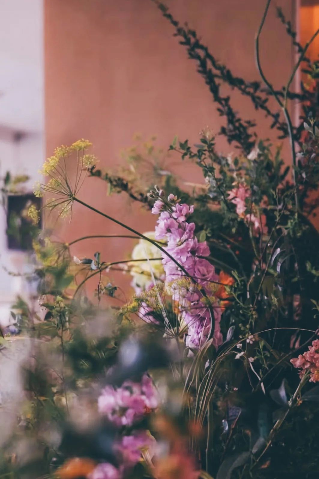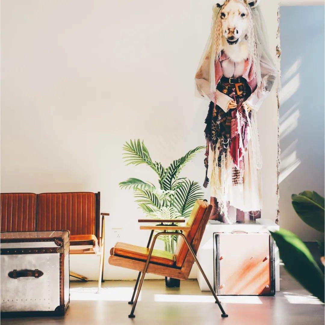 店里被分割成好几个巨大空间,每个空间有自己独到的复古布置:一个是长满高大绿植的空间(还养了只黑兔子),一个主放欧式餐具的房间,另外还有塞满中古衣服、家具、大小各式物件的大厅。所谓“美好的生活像花儿一样”,「如是花舍」便把美好具象成了生活慢空间。与城里光鲜亮丽的摩登花店不同,这里古色古香,花木掩映间可以窥见佛造像、雕花门窗、茶盘茶台、倒挂的束束干花、瓶瓶罐罐的果酒花酒,等等。