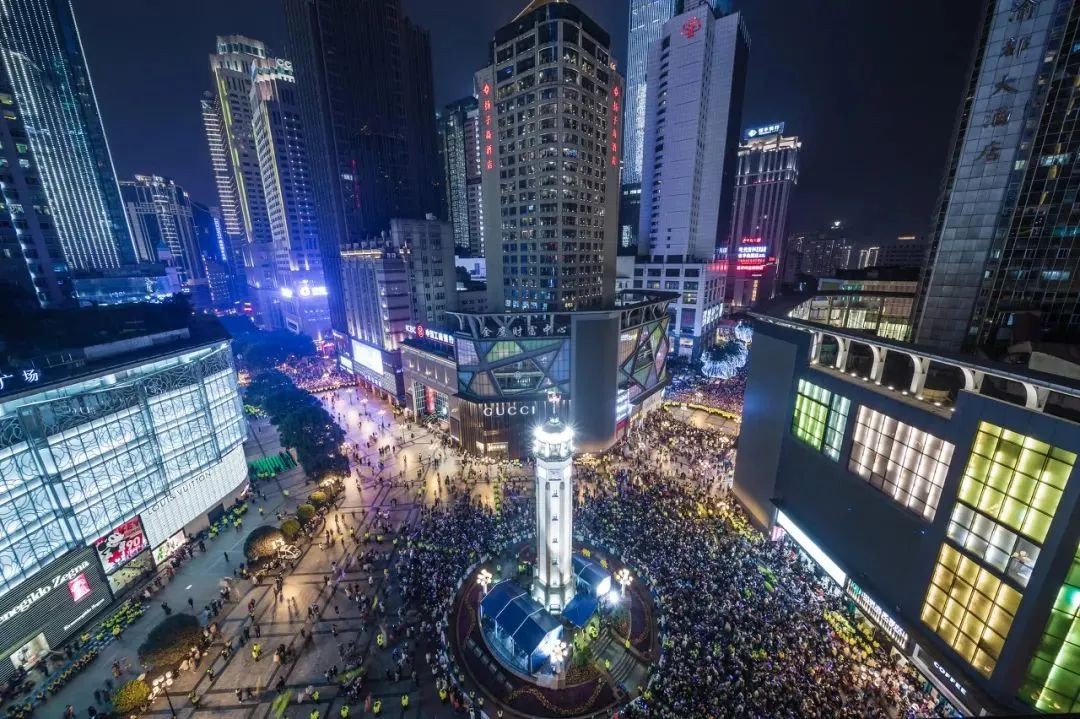 解放碑是重庆的地标建筑,解放碑广场在跨年那天会变得格外热闹,虽然没有什么灯光表演,但是大家都在等着零点的那一刻。