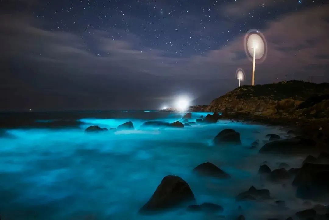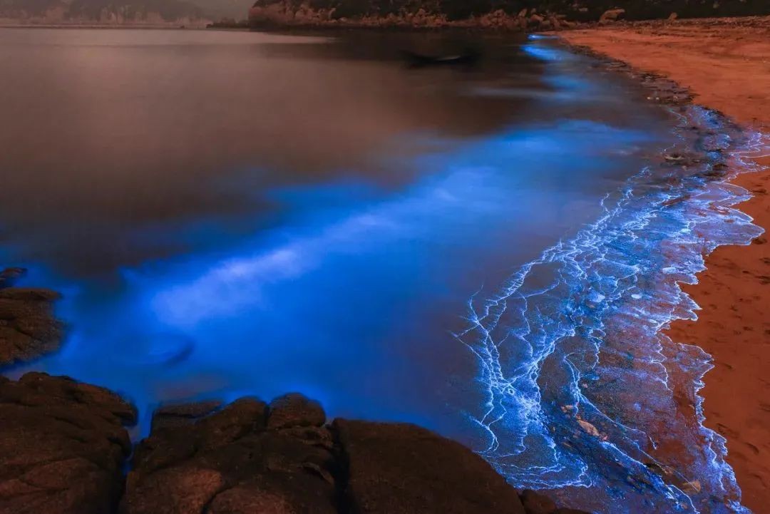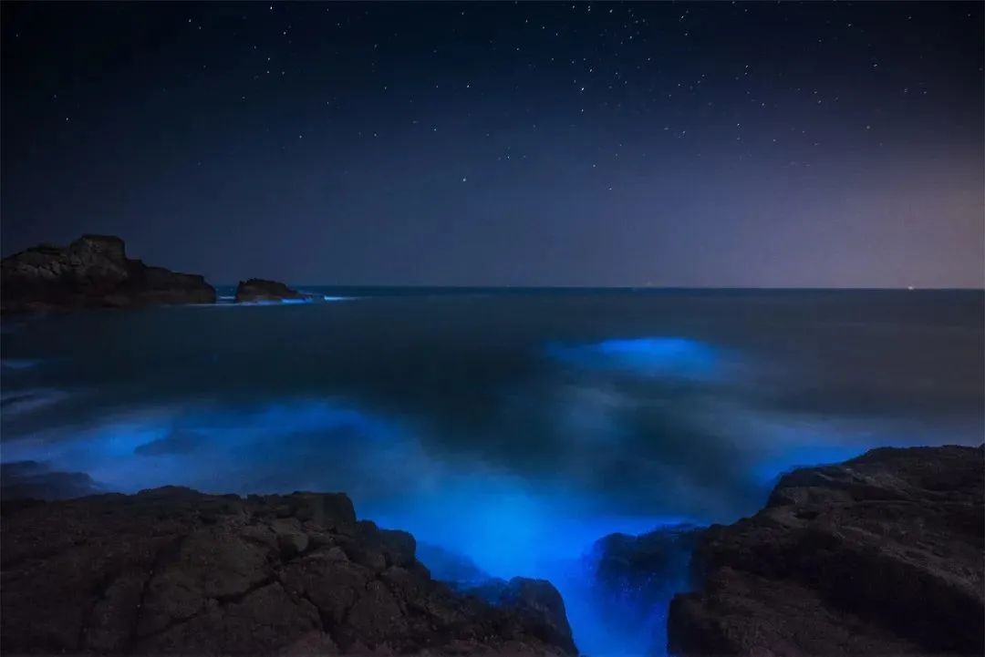 入夜的海面泛起璀璨蓝光,就像蓝色的银河…...