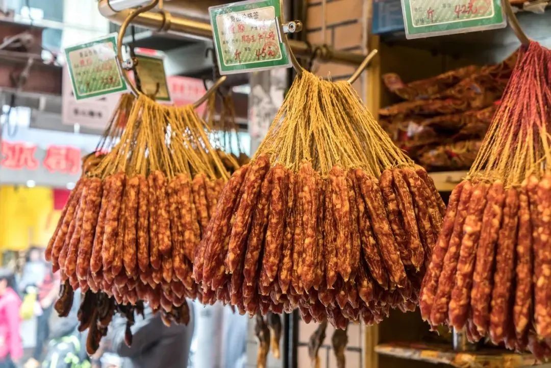 很多店铺门口还会挂着香肠,香味扑鼻,让人忍不住多看两眼。