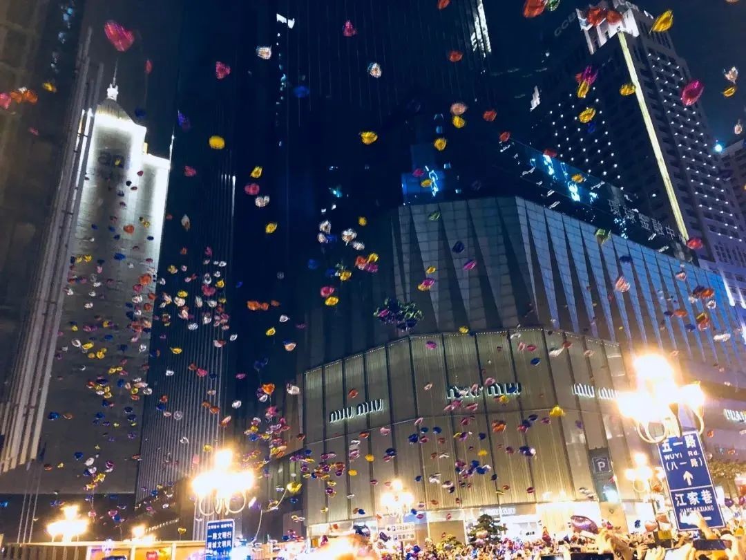 零点一到,每个人都会放飞自己手里的气球,一瞬间万千气球飞向天空,也是把每个人最美的祝愿带向了远方。