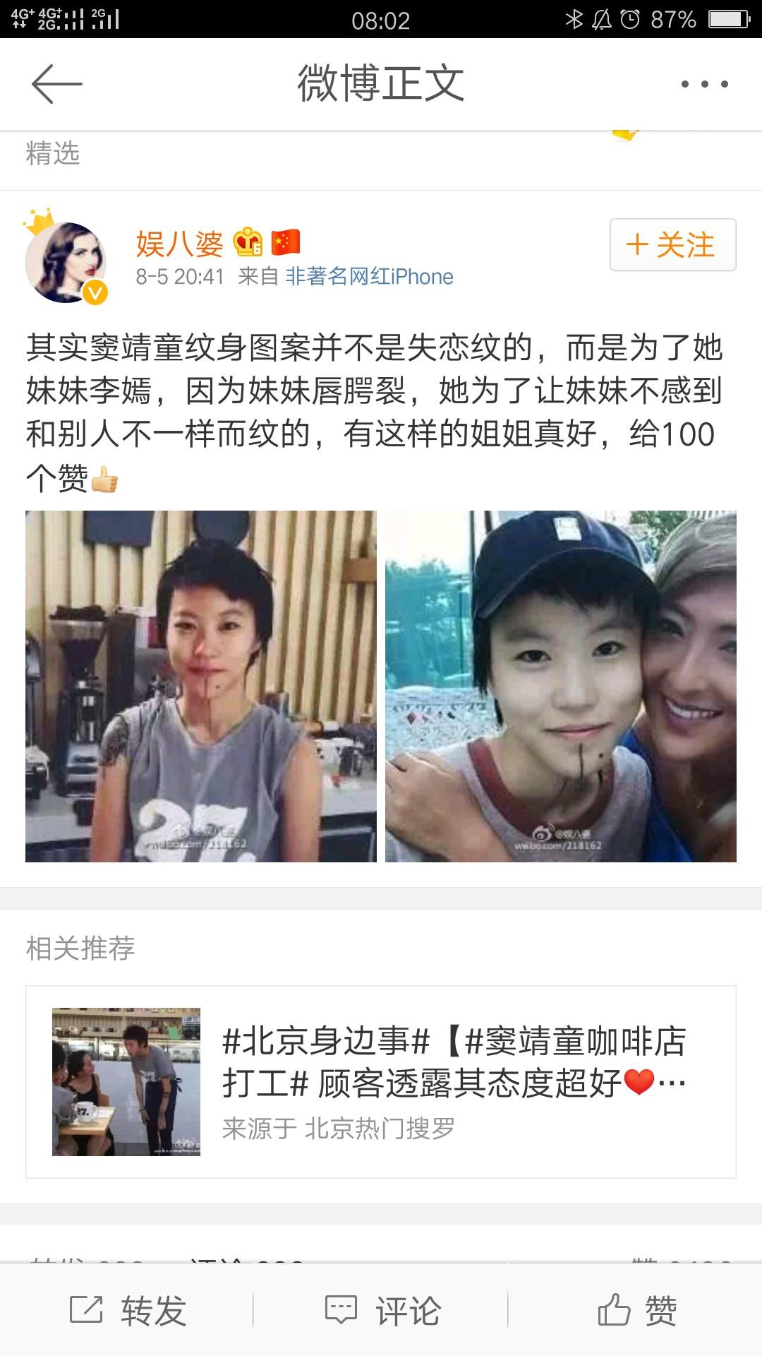 这就是人家的个性,窦靖童觉得这个纹身自己很喜欢,自己纹了高兴就不行么。