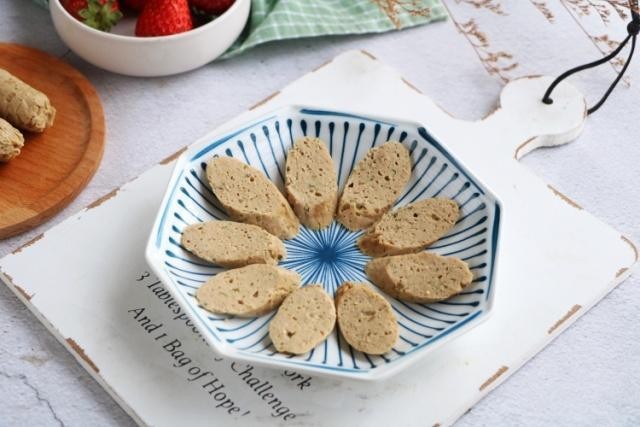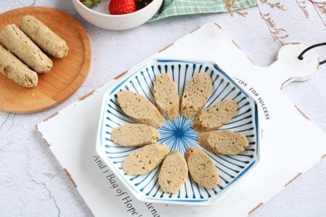 到时间之后,取出蒸好的香肠,放置冷却,撕开锡纸,将成型的香肠切成片装在盘子里就可以吃了。