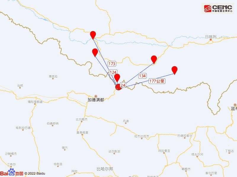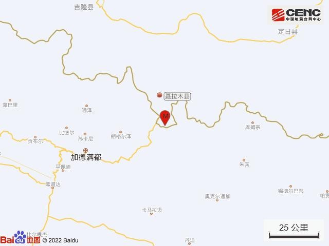 震中距聂拉木县24公里、距吉隆县124公里、距定日县134公里、距萨嘎县173公里、距定结县177公里,距日喀则市315公里,距拉萨市532公里。