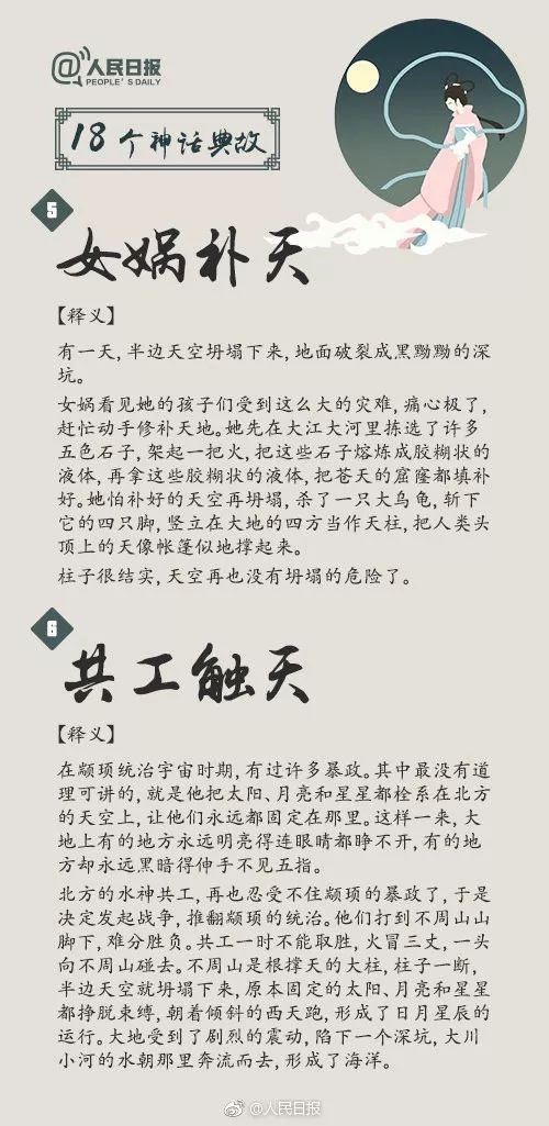 今日分享人民日报发布的18个脍炙人口的神话典故,一起领略神话的魅力吧!
