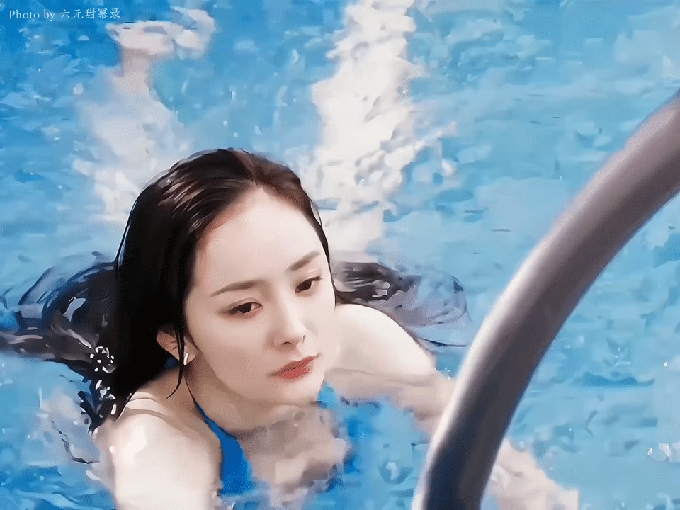 杨幂蓝色比基尼泳装迷人写真