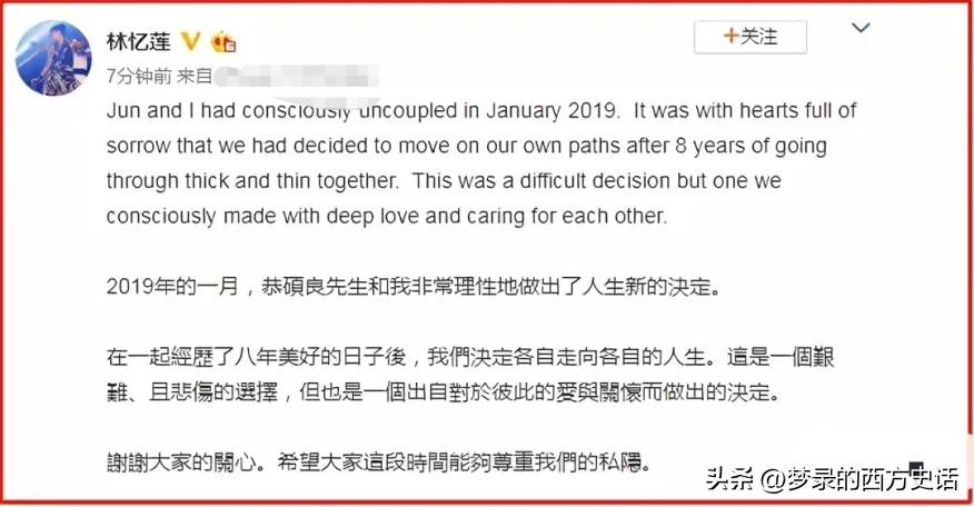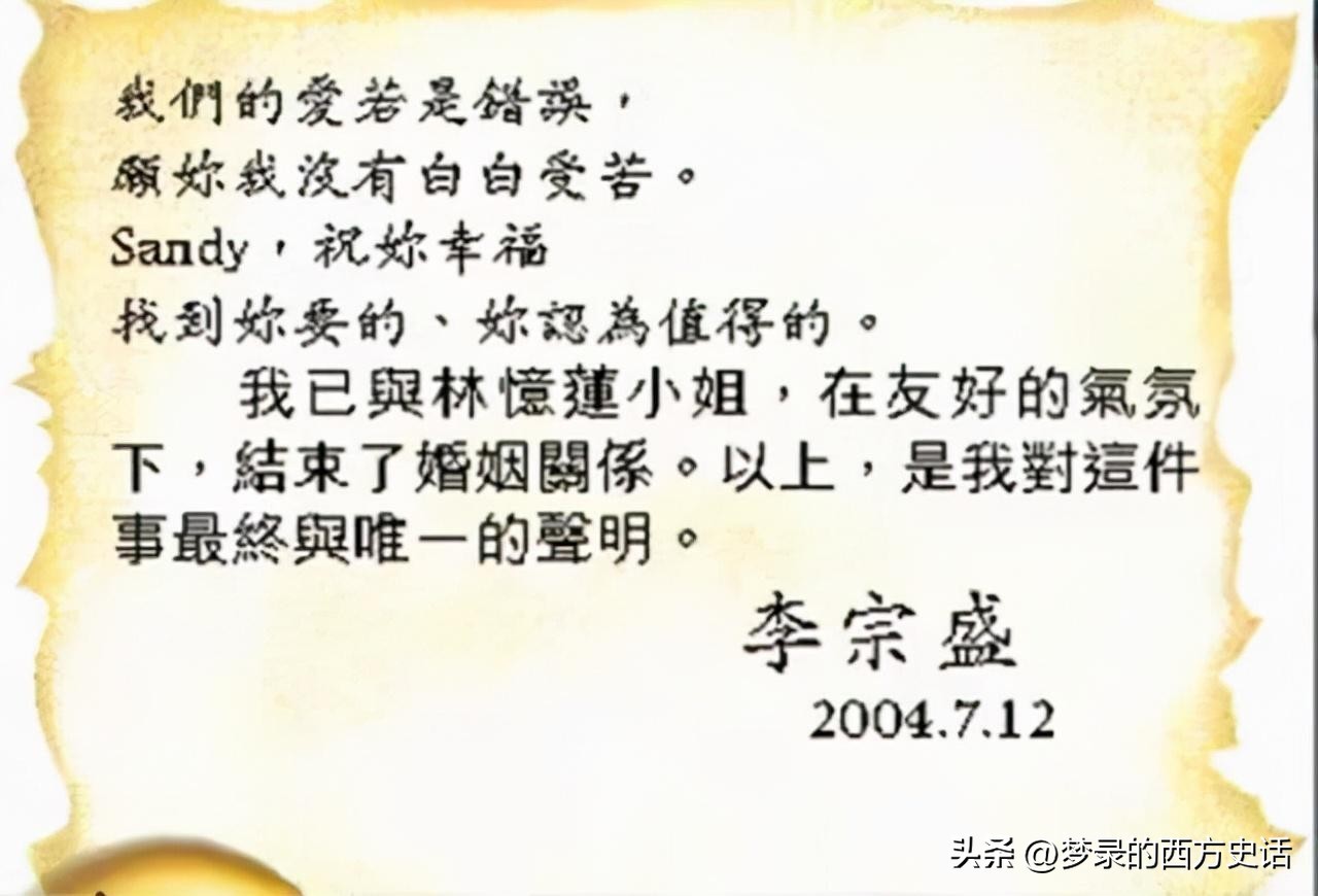 2004年,李宗盛和林忆莲双双发表文字告别过去。