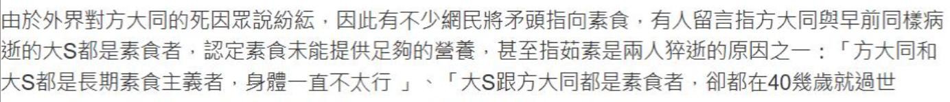方大同和大S的离世,再次引发了公众对素食主义的争议和反思。