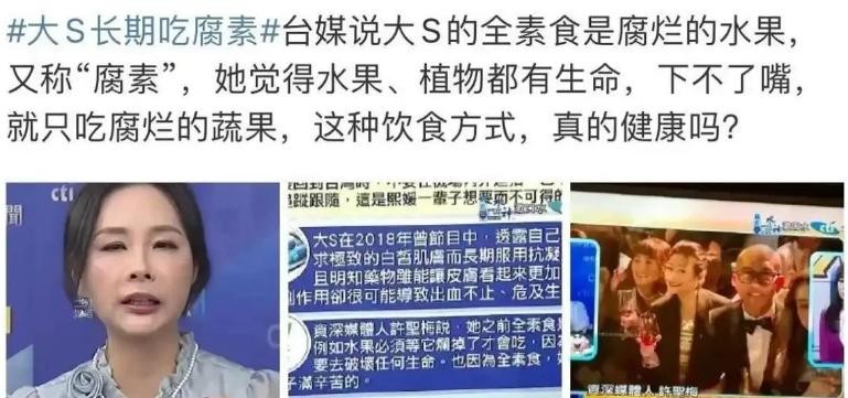 大S的素食之路始于为病危宠物祈福,后演变为极端饮食。