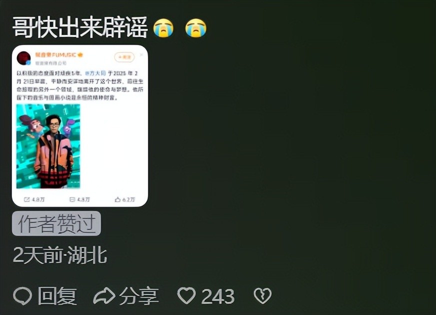 家属悄然举行完葬礼,过完头七之后,他的工作室才官宣了这一噩耗。