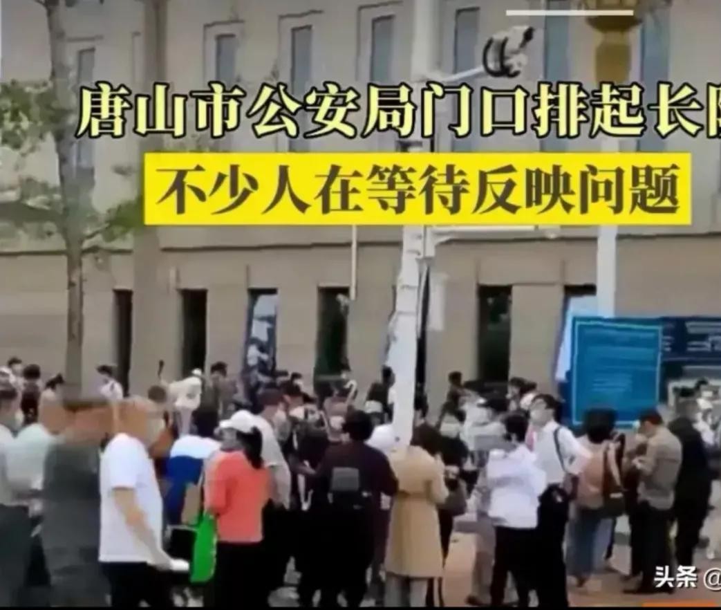 自6.10唐山暴力打人事件后,唐山公安局接待举报投诉的人群排起长队。