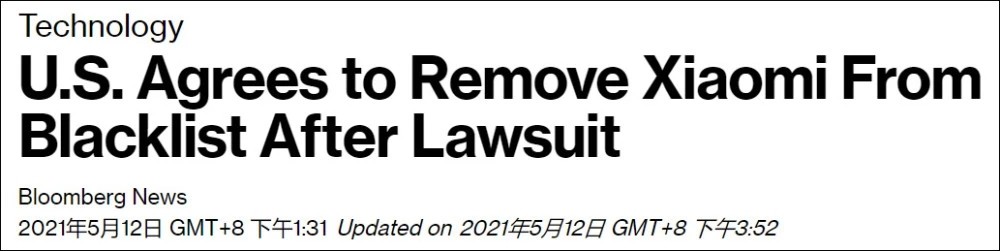 彭博社:小米与美国防部达成和解,被移出“涉军黑名单”