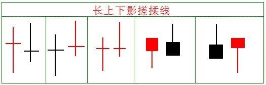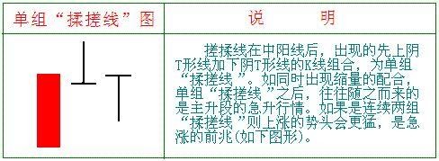 3、搓揉线在中阳线后,出现的先上阴T形线加下阴T形线的K线组合,为单组“揉搓线”。