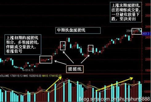 主力这样做的目的无非是两个:一是洗盘;二是变盘。因此,在上涨途中,尤其是涨势初期,出现"搓揉线",大多是主力用此方法清洗浮筹,以减轻上行压力。
