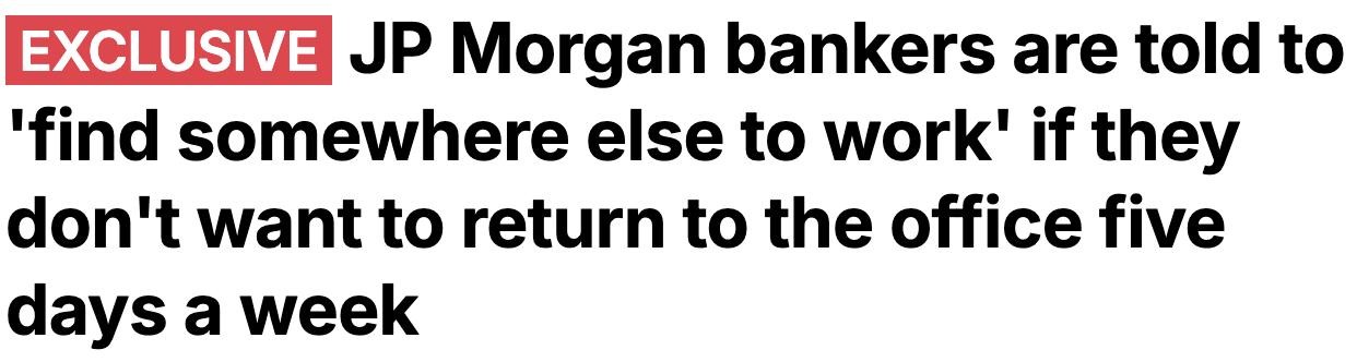 摩根大通强制全员返岗,要求员工一周上五天班,超千人联名抗议