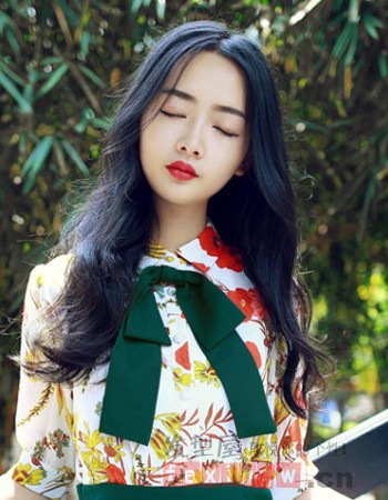 乌黑亮丽的自然发色可是最显女生的清纯气质感了,再搭配简单的中分发型与大卷的长发最显小女生的清纯田园范儿了。