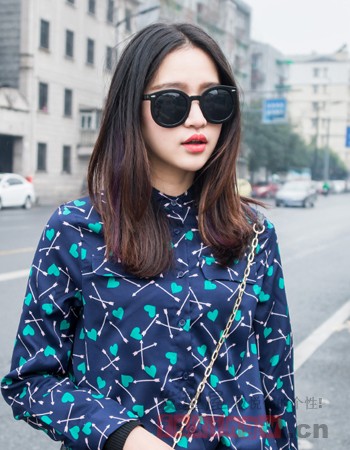 很适合轻熟女的一款时尚中分发型搭配,清新低调的发色再搭配中分形式的飘逸中长直发,一副简单的墨镜更显女生的潮流街拍范儿。