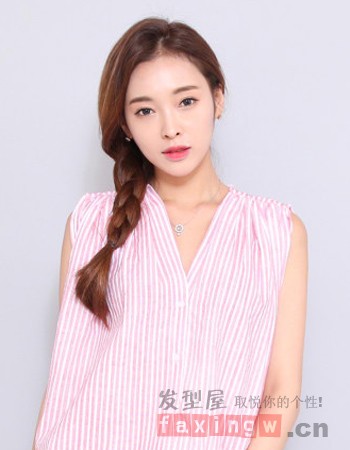 一款很显温柔淑女风式的时尚中分发型图片设计,搭配的是清爽的中分露额发型,搭配侧边精致的辫子编发更显十足的温柔淑女范儿。