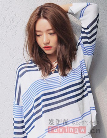 以简单清爽的中分露额发型设计为主,再搭配清新低调的深棕色染发颜色与齐肩形式的中发造型,最显女生的优雅女神范儿了。