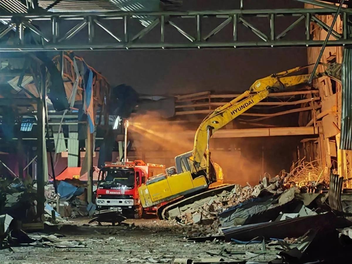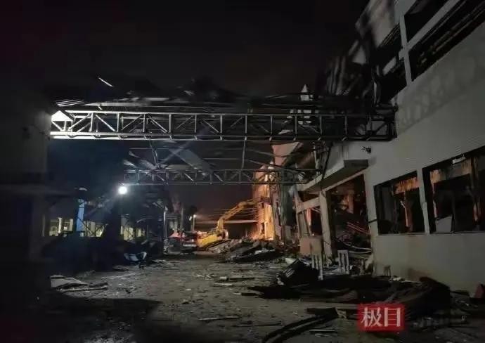江苏海安爆炸工厂核心区:厂房顶棚坍塌近半,另有车间设备仍运转