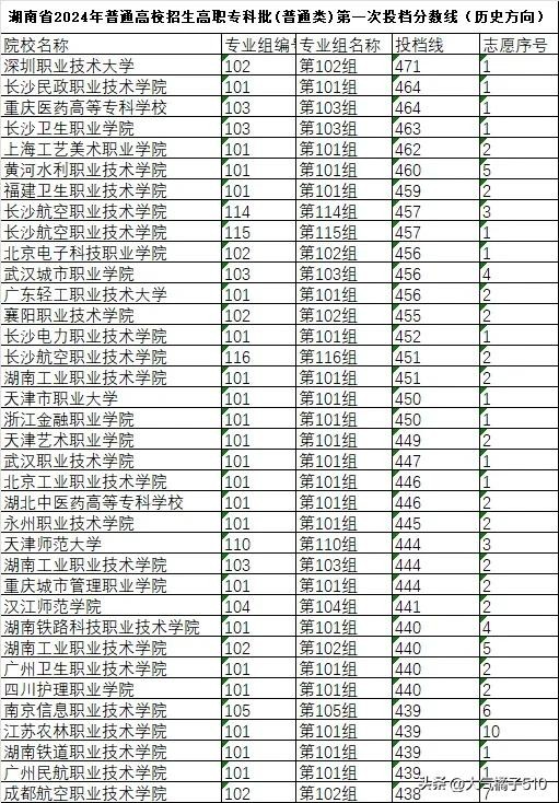 看了各校的投档分数线 ,不得不说高职专科批的竞争也相当地激烈,2024年湖南省物理方向本科线为422分,历史方向本科线为438分。而这次高职专科批有不少高校的投档分数线超过了本科线。