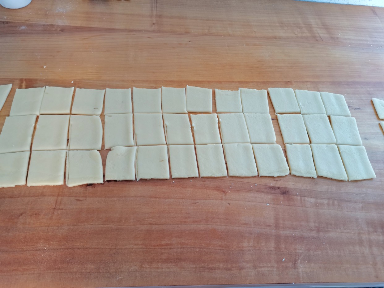 用5分钟就可以完成上面的过程,是不是很简单,不用发面,不用饧面,面团和好后直接擀开就行。