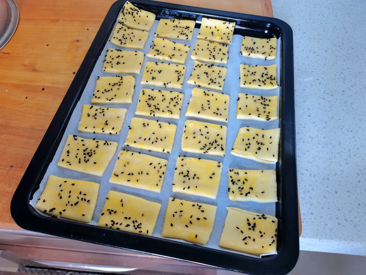 刷蛋黄液烤出来的饼干颜色金黄好看,不喜欢也可以不刷,不刷蛋黄液的饼干是面粉的本色,口感是一样的,都是一样的酥脆好吃。