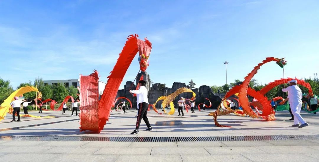 “我上山是虎,我下海是龙,我在人间是堂堂的大英雄。我挥手起雨,我舞动生风,看我东方升腾的中国龙…… ”每天早晚,伴随着《中国龙》音乐的响起,宝山舞龙队的队员们便结伴舞起彩带龙。10米多长的彩带龙迎风飞舞,队员们跳龙、抛龙、舞龙接力,动作如行云流水、力道收放自如,给小城增添了一道亮丽的风景线。