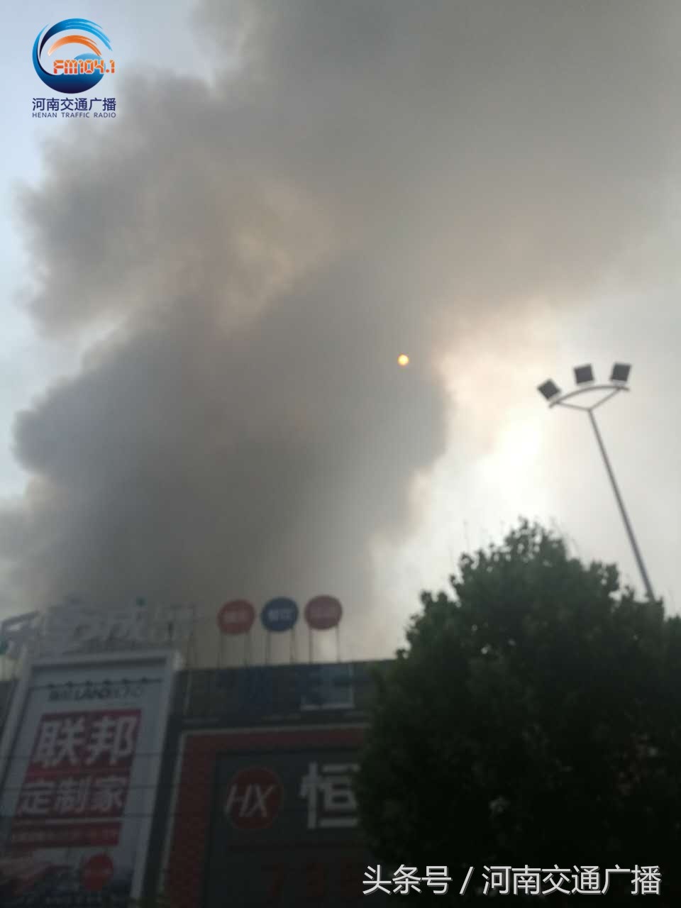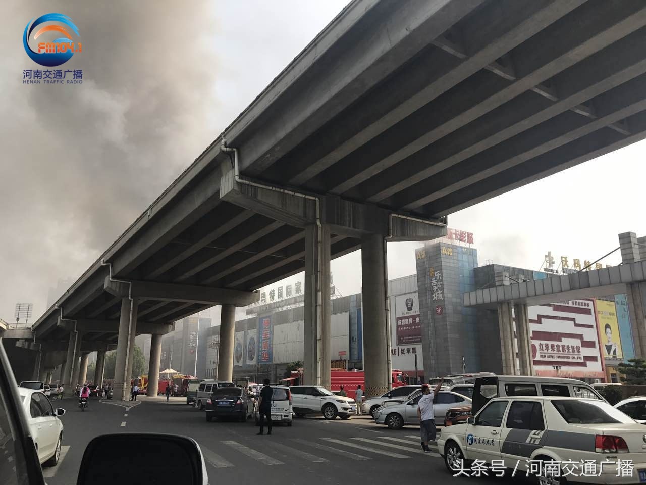 中原百姓广场浓烟滚滚 周边道路通行受阻