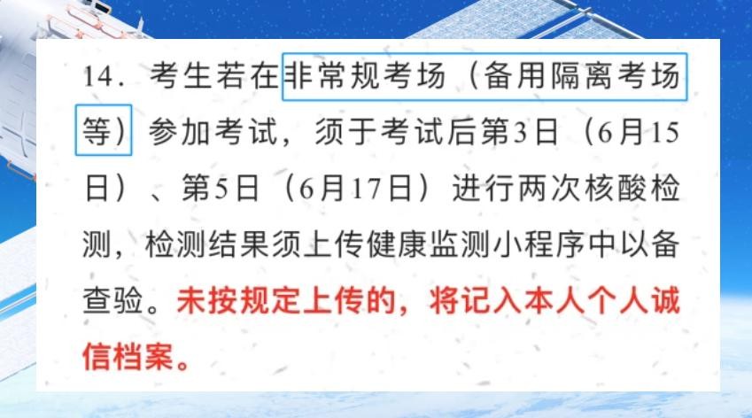 从通知内容上来看,这一点总体来说应该是天津市招生考试院发布这条通知中文案所产生的谬误和疏忽。在这个通知的第十四点中写明了,考生若在非常规考场,(备用隔离考场等)参加考试……。