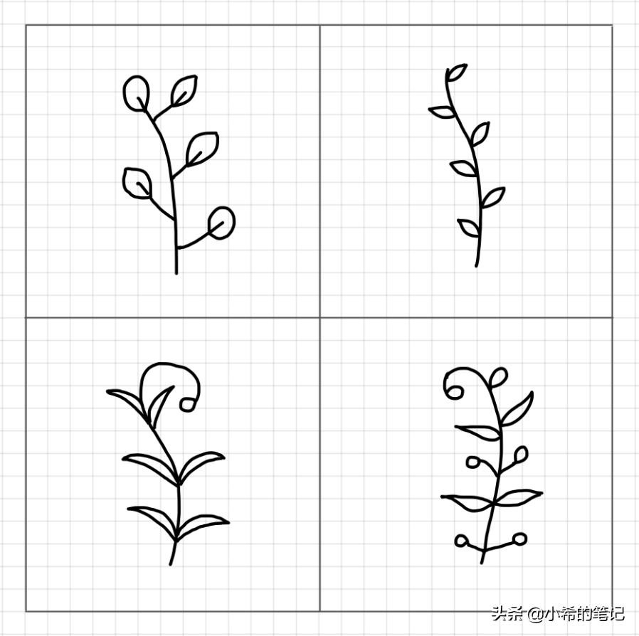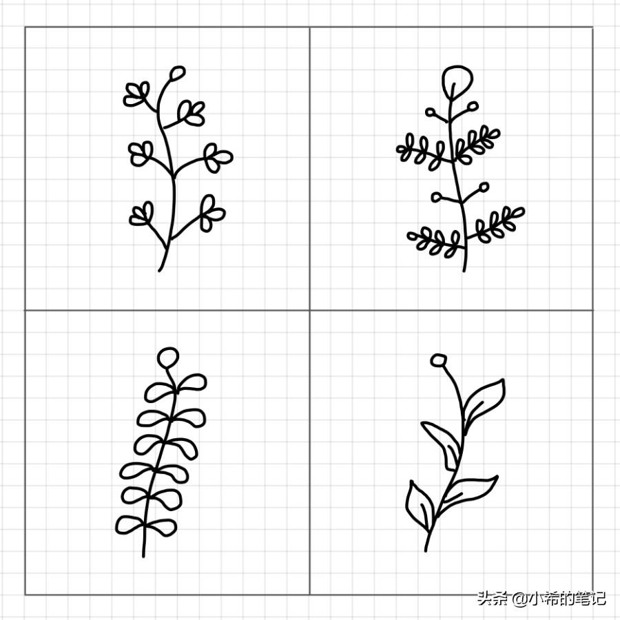 简笔画|简单好看的枝条简笔画,让你的手帐更生动