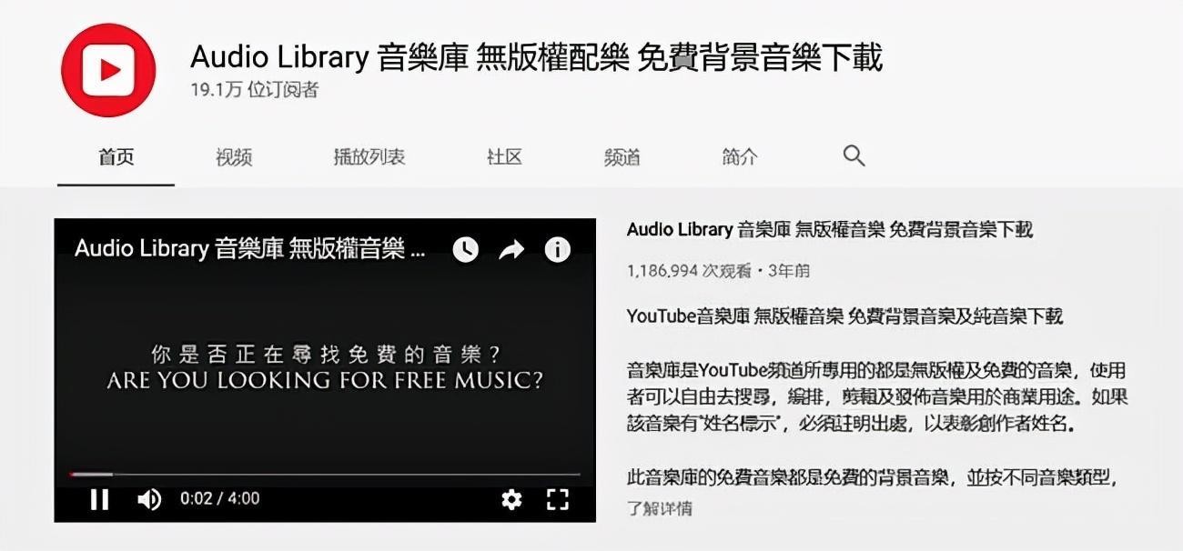 Youtube上的无版权音乐,但需要配合科学上网使用。