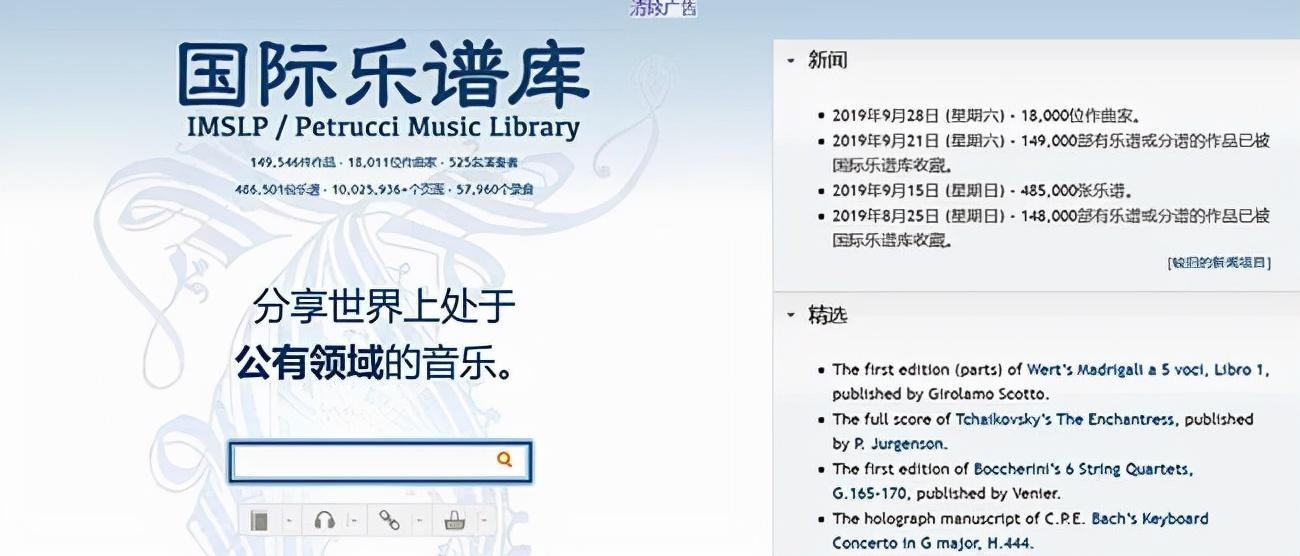 网站中的乐谱与音乐可免费下载,IMSLP(国际乐谱库项目)致力于创建一个音乐库网络,其乐谱包含所有公共类别,以及乐曲的乐曲的不同版本,与世界分享他们的作品。