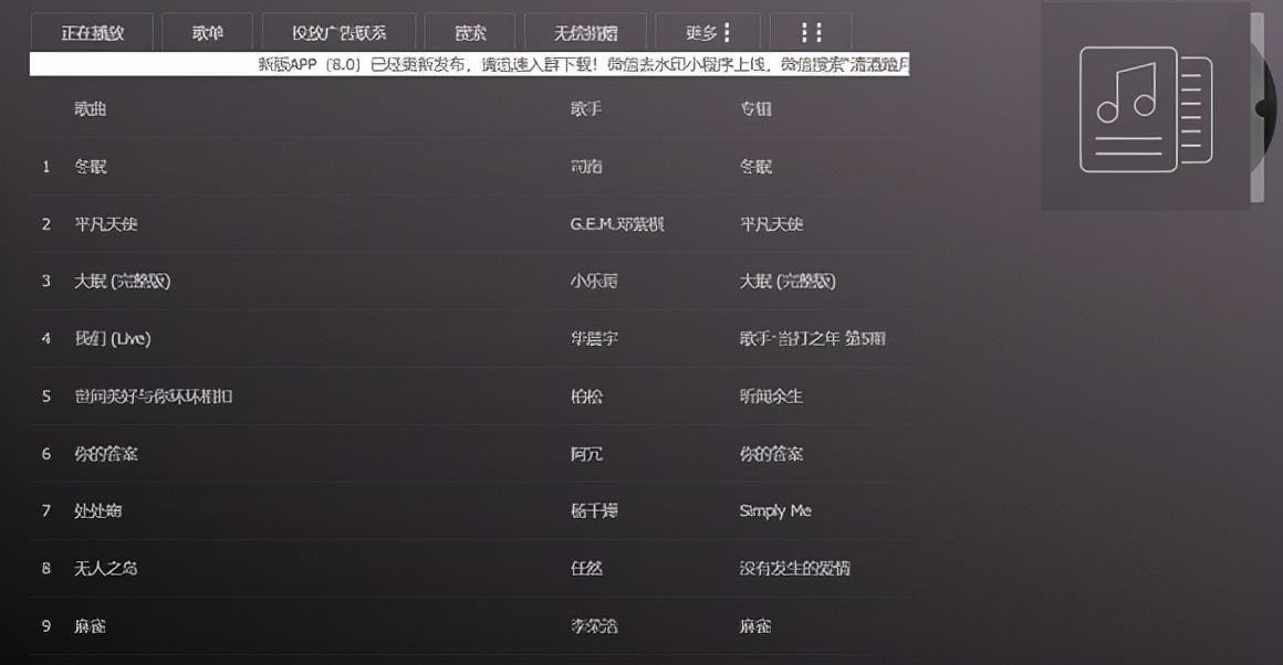 这个免费音乐网站可以算是一个在线音乐软件,自动加载出最近非常火的音乐榜单,点击即可试听,当然,下载也是免费的~