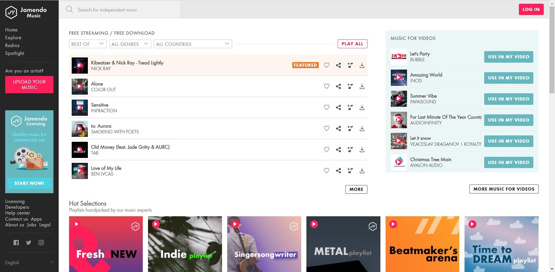 网站音乐由各个独立音乐人创作上传,需要注册登录下载。网站内音乐可免费用于个人使用,但用于商业用途需要遵守网站的相关规定。