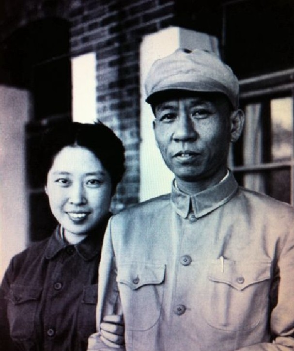 但是,此时的延安也不安全了。1947年初,胡宗南部开始进攻延安。王光美随部队转战陕北。后来,她又跟随部队来到西柏坡。1948年8月21日,王光美和少奇在西柏坡结婚。少奇生于1898年11月,比王光美大23岁。下面这张照片,就拍摄于他们结婚后不久。