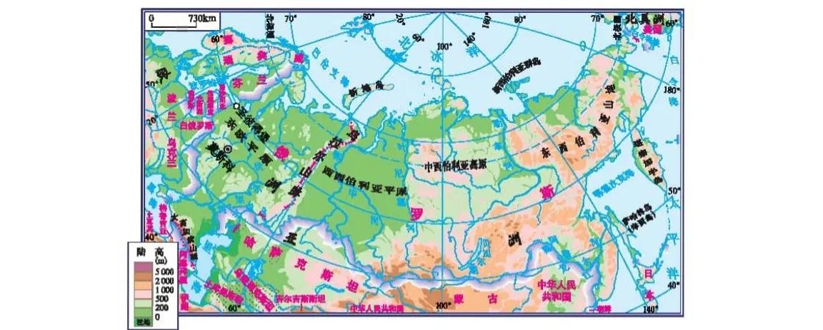 俄罗斯是世界上领土面积最大的国家,国土面积1709.82万平方千米,占原苏联总面积的76.3%。俄罗斯占有着欧亚大陆,东西最长达到了9000千米,南北最宽为4000千米,领土包括欧洲的东部和亚洲的北部,是世界上国土最辽阔的国家。俄罗斯国界线长60933多千米,其中,海岸线长达38807千米,濒临大西洋、北冰洋、太平洋的12个海;陆界长达14509千米,与14个国家接壤,南部和东南部同中国、朝鲜接壤,南连阿塞拜疆、蒙古、格鲁吉亚、哈萨克斯坦,西南连接乌克兰,西部与芬兰、白俄罗斯、爱沙尼亚、拉脱维亚、立陶宛、挪威毗邻而居。加里宁格勒州与波兰、立陶宛相邻。东面与日本和美国隔海相望。