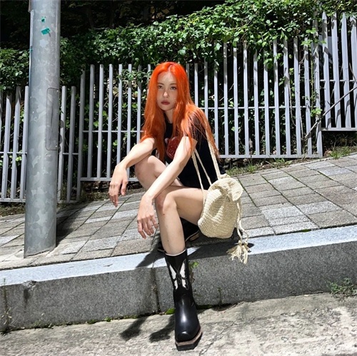 通过将靴子与编织袋时尚包包搭配起来,营造出“时髦”的氛围。尤其是纤细的双腿更引人注目,身高167cm、体重45kg的精瘦线条让人敬佩,宣美同时散发着梦幻般的感觉和别致的气息,歌手宣美展现了不同寻常的时尚氛围。