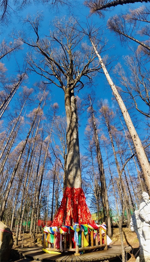 满族创世传说:阿不卡恩都里天神砍下了一棵最粗大的榆树,让女真先人顺着树干来到长白山,后来女真人以榆树为祭坛,顶衣膜拜,以水代酒,绕树三圈祈祷。此千金榆,生于宋金,两人难以合抱,已历千年,更难能可贵的是,历经1597、1668、1702年三次火山喷发,依然傲然屹立,是不是真可以称得上是树神了呢?若你也有心中所祈祷之事,不妨也绕上三圈,内心祈祷,深深感受对大自然的敬畏之情。