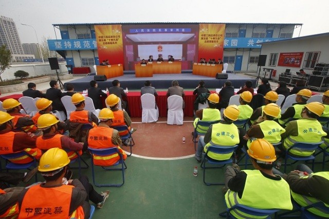 为了这场模拟法庭显得专业并且真实,现场庭审人员由公司专职法务人员组成,现场的原告、被告都是农民工,模拟法庭内容是以“农民工工资拖欠引发的劳动争议”真实案例为原型,模拟劳动争议审判的庭审现场,受到了青年员工的热烈欢迎。