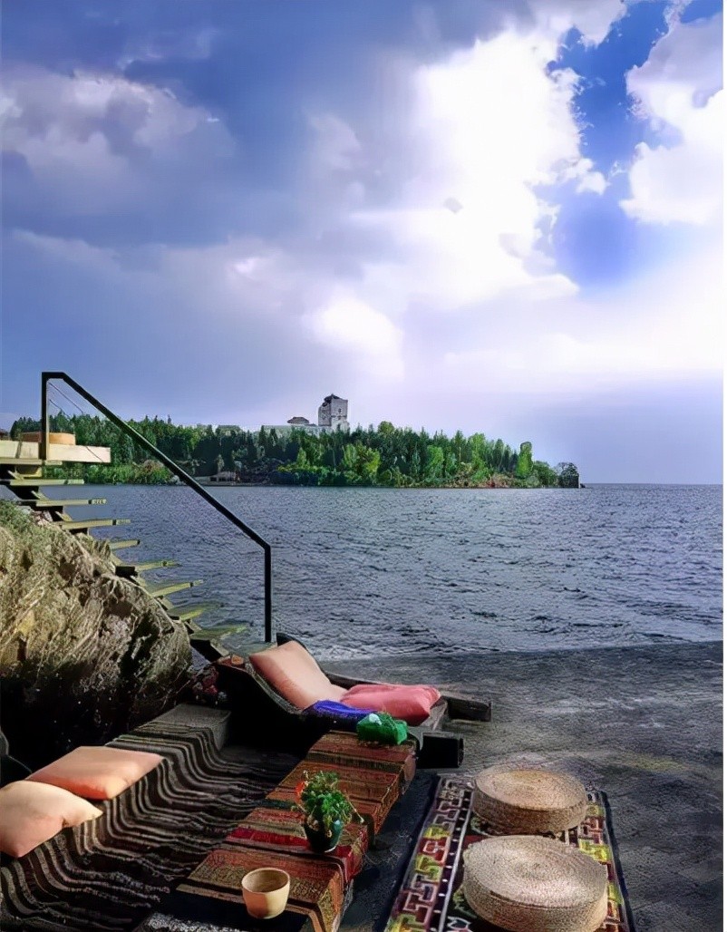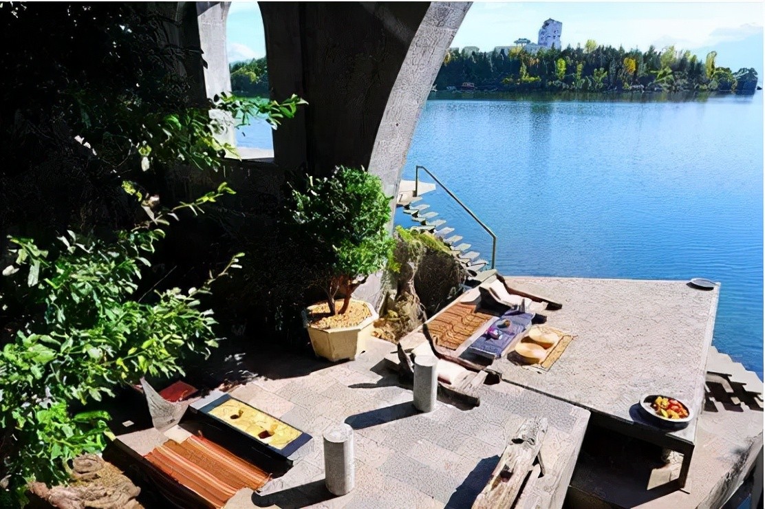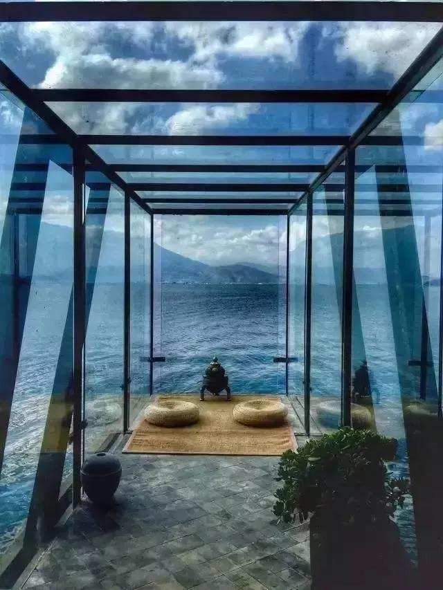 大理双廊的玉几岛,以前是一个名不见经传的地方,玉几岛三面环洱海,西面有苍山如屏!杨丽萍的“太阳宫”“月亮宫”就位于玉几岛上最临海的位置!