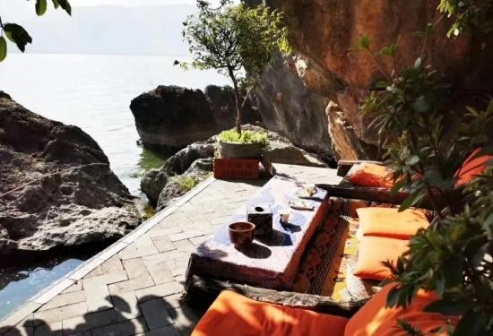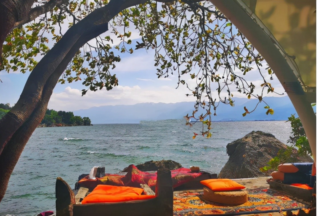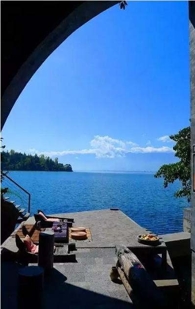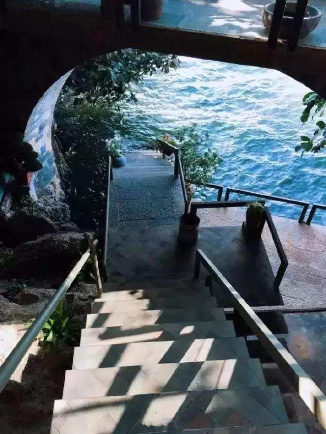踩着台阶往上,台边就和洱海相接,在大树的天然树荫下,和大自然融为一体。
